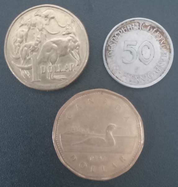 • 3 Moedas Estrangeiras - 3 moedas !! Dollar Canada , Dollar Australia e Alemanha  bem antiga e bonita !! acervo de colecionador !!