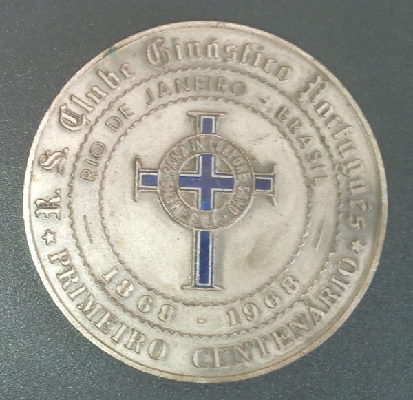 • Medalha - Comemorativa do Clube Ginástico Portugues do Rio de Janeiro !! fundado em 1868 !! Primeiro Centenário do clube ano de 1968 !! material aço cor prata !! grande peça diametro de 58mm !! acervo de colecionador !!