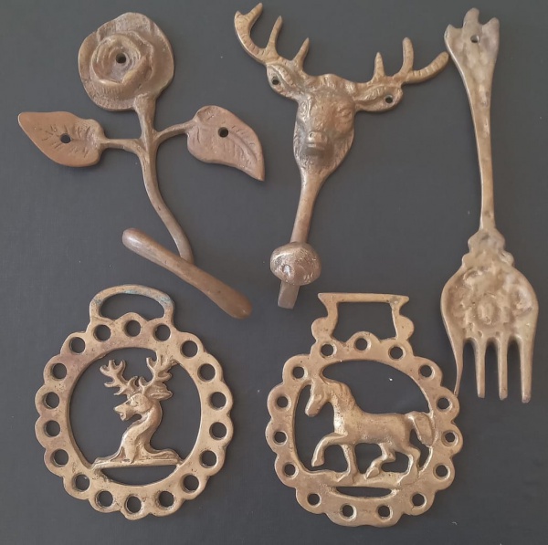• Arte Popular !! 5 peças em metal Bronze !! ideal para decoração de casa de campo, sitio ou fazenda !! uso como cabideiro, ou no local dos cavaleiros !! tamanho cerca de 12 cm .