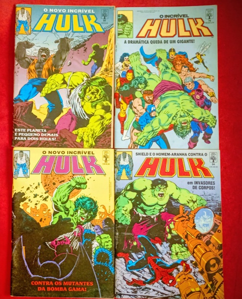 • Revista Quadrinhos 4 Peças !! HULK !! O Novo e Incrivel Hulk !! Raridades !! edições do ano de 1990 !! Invasores de Corpos !! editora ABRIL !! 35 anos atras !! Dançando com o demonio !! acervo de colecionador !!