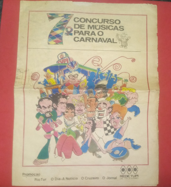 • Jornal Promocional do 7° Concurso de musicas para o carnaval, Promoção TV-TUPI, o cruzeiro e jornal o dia!! Fabulosa Charge de Capa!!