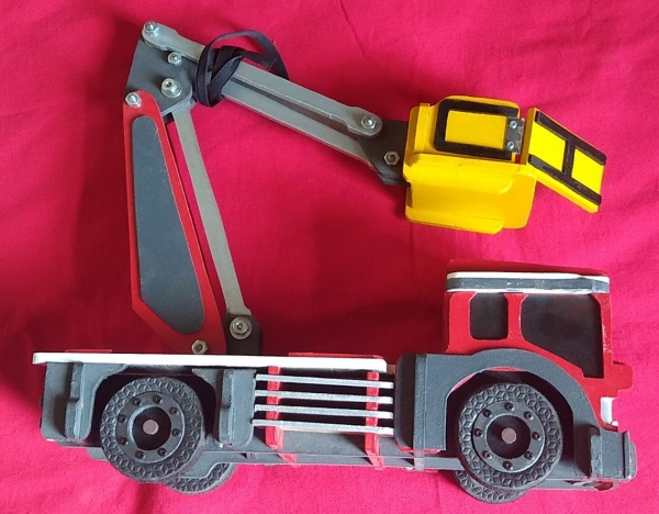 • Brinquedo - caminhão de Quindaste , madeira feito a Mão, rico em detalhes , rodas de borracha , Tamanho grande , comprimento de 36cm por largura de 16cm com altura maior de 30Cm (lança de portinhola )