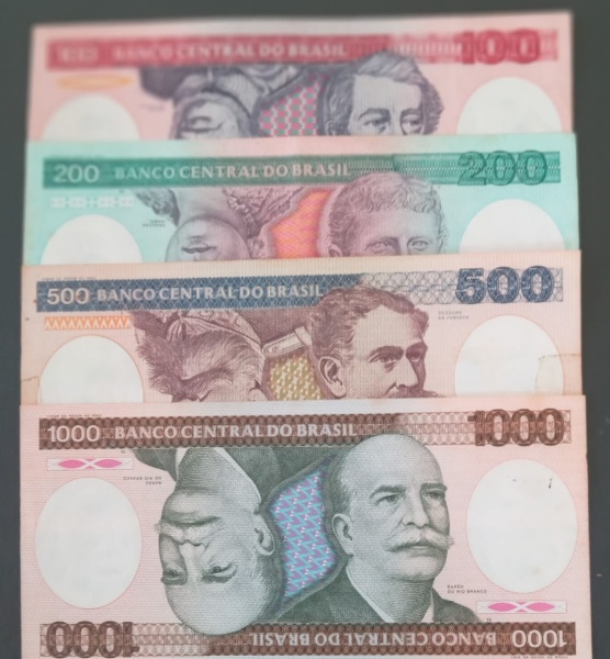• 4 Cedula do Brasil !! sequencia de 100 cruzeiros até 1000 Cruzeiros do valor monetário da decada de 1980 !! estado de MBC quase  soberbas !!