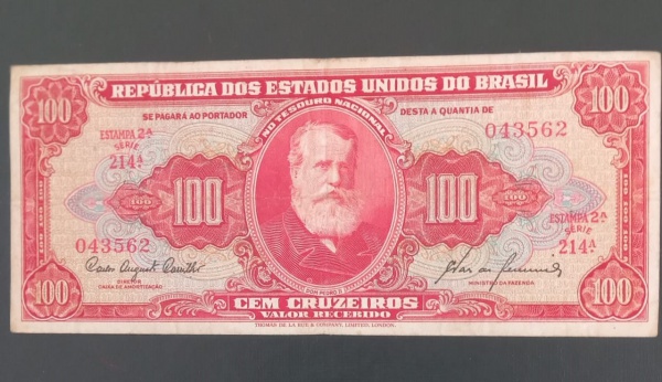 • Cedula do Brail - de valor de 100 cruzeiros tipo vermelha !! sem carimbo de desvalorização !! alto valor de mercado ... dificil de aparecer !!