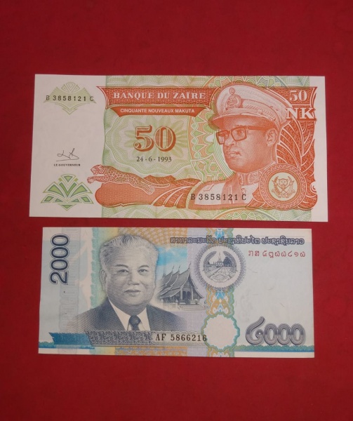 • 2 Cedulas / Zaire 50 nova Macuta !! Flor de estampa, decreto de 1993 !! e cedula do Oriente decereto de 2011 !! valor de 2000 unitários !!