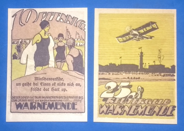 • 2 cedulas / Alemanha - Not geld do periodo da Hiperinflação valores de 10 e 25 Pfenning !!! Lindos desenhos de epoca (1922) !!!