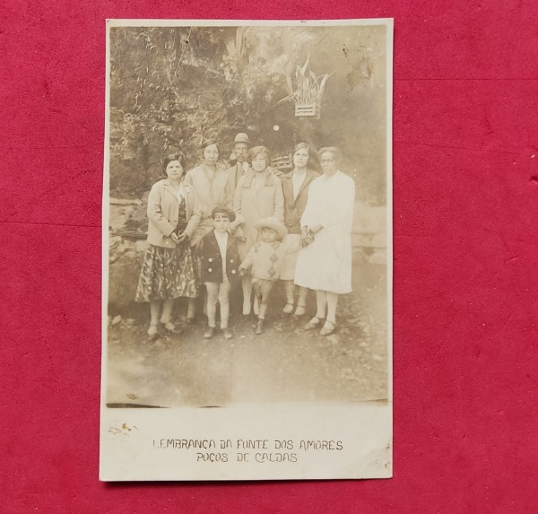 • Cartofilia - Familia reunida Fontes dos Amores !!  Poços de Caldas / M.G. !!! 6 adultos e 2 Crianças decada de  1950 !! Preto e branco  !!