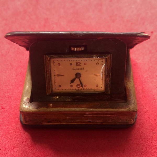• Relógio book of hours - livro de hora relógio em forma de livro - marca Bucherer Swiss revisado antiguidade -- difícil de aparecer