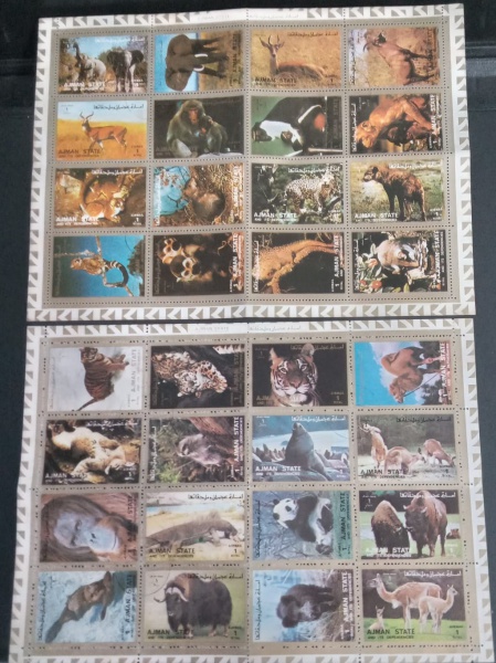 • Filatelia - 32  selos tipo maior  !! todos diferentes de figuras de animaisn da Africa !! do local AJman !! lindas fotos !! dificil de aparecer !! acervo de colecionador !! l