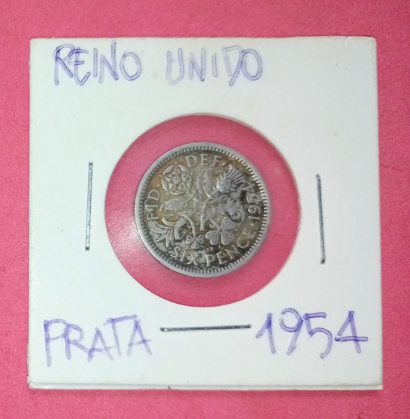 •  Moeda ; Inglaterra , material prata !! Valor de Six Pence ano de 1954  !! Valor de mercado = 40,00 Reais    !!