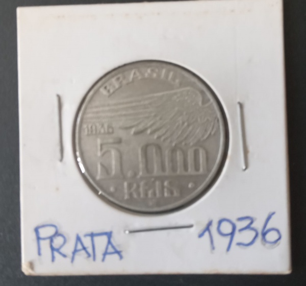 • Moeda - Brasil !! valor de 5000 Reis Material Prata !! data de 1936 !! Comemorativa ao Santos Dumont |!!