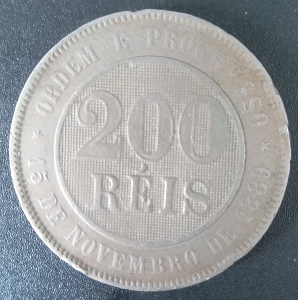 • Moeda do Brasil - valor de 200 Reis data de 1896 !! tempo da republica !! ja esta escassa !! valor abaixo de mercado !!