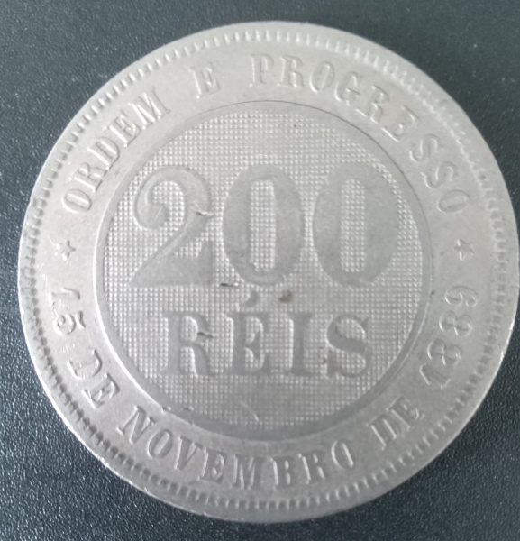• Moeda do Brasil - valor de 200 Reis data de 1895 !! tempo da republica !! ja esta escassa !! valor  inicial muito abaixo de ,mercado !!