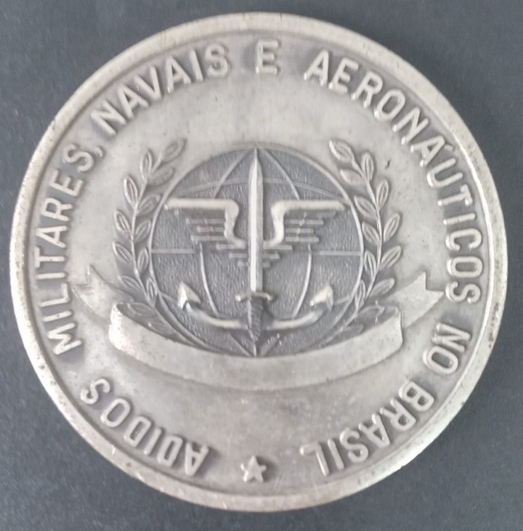• Medalha de condecoração para Adido Militar no exterior !! sendo da marinha , Exercito e Aeronautica !!  grande peça de diam,etro de 72mm !! foleada a prata !! alto valor !!