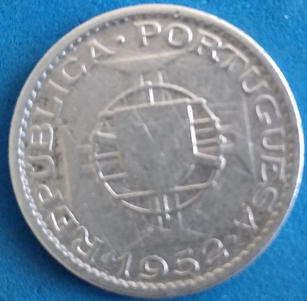 • Moeda /Angola  !! Colonia portuguesa  !!material prata !! Ano de 1952 ! Raridade  , dificil de aparecer  !!