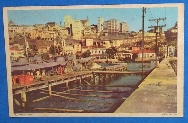 • Cartofilia - Brasil - raridade , Salvador colorido ano de 1960  !!! Vista parcial  !!!  Com escrita da época no verso !!!