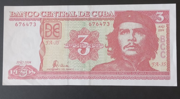 • Cedula - estrangeira - CUBA !! valor diferenciado de 3 Pesos !! figura de CHE !!! decreto de ano de 2004 !! soberbissima !!