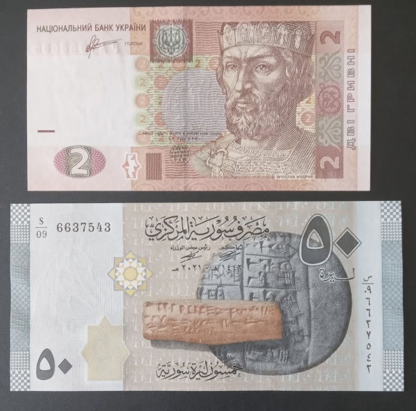 • 2 Cedulas estrangeiras !! Lindas  !! FLOR DE ESTAMPA !! LINDAS da SIRIA  !! coloque na sua coleção !! valor bem barato !!