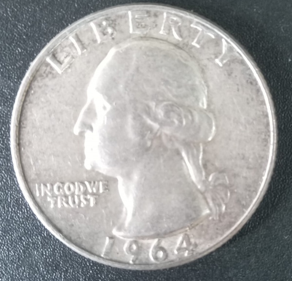 • Moeda USA !! Quarter Dollar de Prata !! ultima data que foi Prata 900 !! ano de 1964 !! proximos anos em material ferroso !!  equivale 25 centavos de dollar !!