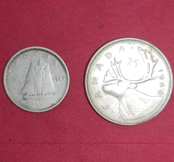 • 2 Moedas/ Canada !! material prata !! valor de 10cents /1944 e 25 cents ano de 1966 !!