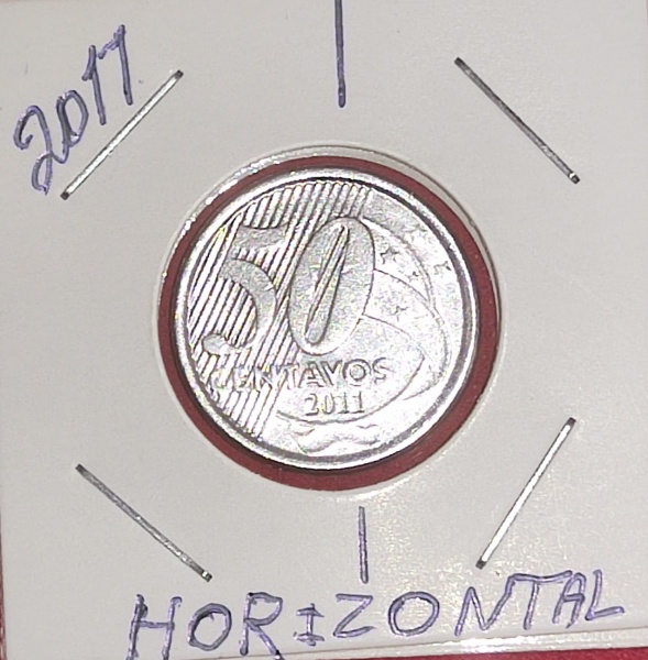 • Moeda - Brasil - Reverso horizontal !! valor de 50 centavos ano de 2011 !! Valor estimativa de mercado = 80,00 Reais , !!