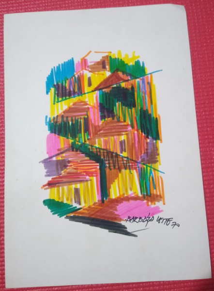 • Pintura !! A CASA "" Autor Barbosa Leite !! de 1970 !! em formato A4 !! papel desenho .. uso de Hidrocor sobre Lapis !! perfeito para ser enquadrado !!!!, tamanho A4 , !!