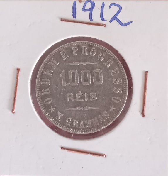 • Moeda - Brasil !! valor de 1000 reis ano de 1912 !! material prata !! a data mais dificil desta serie !! valor inicial abaixo de catalogo