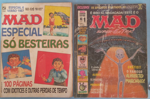 • 2 revistas MAD !! edição especial 1987 !! e MAD Super-Extra !! varios Extra- Terrestres , E.T. de Varginha !! + E.T. do filme !! + ALF !! + WELberson !! e o famoso Alfabeto marciano !! revista apresentam desgaste do tempo !!