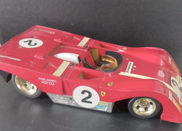 • Colecionismo- Miniatura de Carro de Corrida modelo FARRARI 312P pilotado por MArio Andretti e JACKy Ickx !! utilizado na categoria Prototipo !! um  Formula 1 com carroceria fechada !! manufaturado em escala 1;18 volante controla rodas dianteiras .. tampa do Motor abre !!