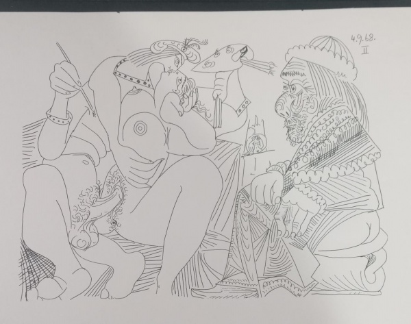 • Arte Erótica !! Autor Pablo Picasso !! Reprografia original !! Peça em fundo branco   com desenho com  3 pessoas  em bico de pena nanquim preto !! , data de setembro  de 1968  !! - tamanho 36cmx23cm !! perfeito para enquadrar !! !! acervo de colecionador !! alto valor de mercado !!