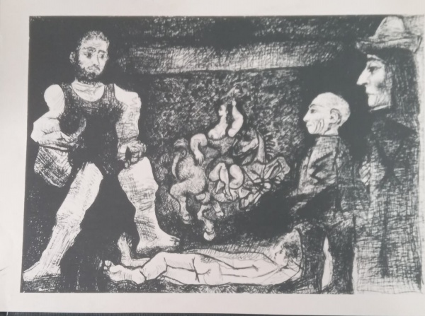 • Arte Erótica !! Autor Pablo Picasso !! Reprografia original !! Peça em fundo branco  do tipo xilogravura com imagem de aprisionados  em bico de pena nanquim preto !! , sem data  !! - tamanho 36cmx23cm !! perfeito para enquadrar !! !! acervo de colecionador !! alto valor de mercado !!