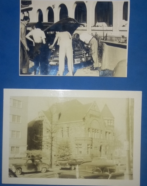 • 2 Fotografias - Preto e Branco automóvel sendo consertado pessoal e local nos Estados unidos em neve !!! !!