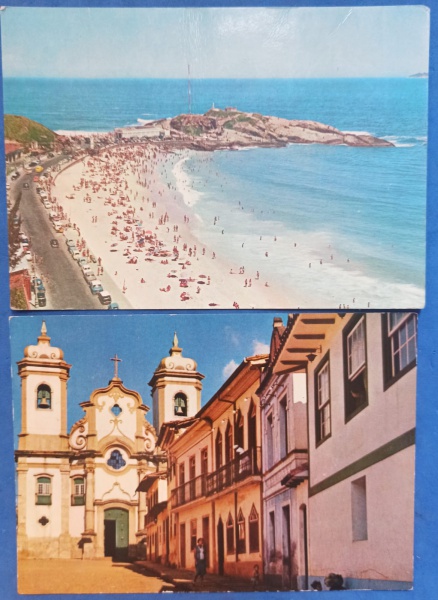 • 2 postais - Ouro preto M.G. igreja Barroca  !! e Praia do arpoador R.J. ambos decada de 1970 !!