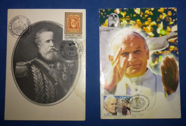 • 2 Postais !! Papa João Paulo II com selo de primeiro dia !! e D. Pedro II , centenário do Barba Branca !!