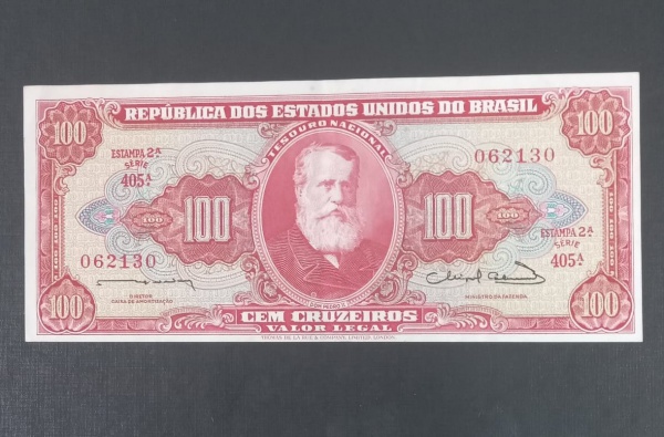 • Cedula de Brasil !! valor de 100 Cruzeiros !! Dom pedro II segunda estampa cor vermelha !! flor de estampa !! valor de mercado cerca de 50 Reais !! a mais dificil !!