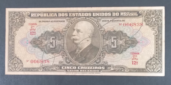 • Cedula de 5 Cruzeirosw autografada !! Serie iniciais Numero 12 !! periodo da decada de 1950 !! valor de mercado cerca de 35,00 Reais !!