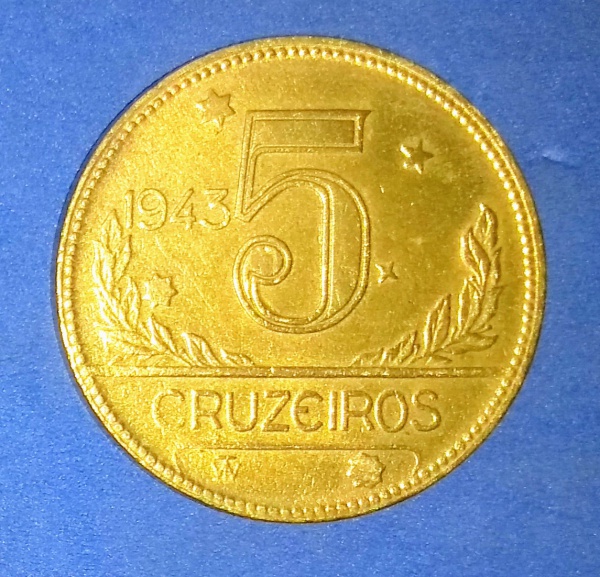 • Moeda / Brasil - valor 5 cruzeiros ano de 1943  !! Estado de Soberba !!! Material bronze/aluminio !!  !! Valor de catalogo bem maior   !!