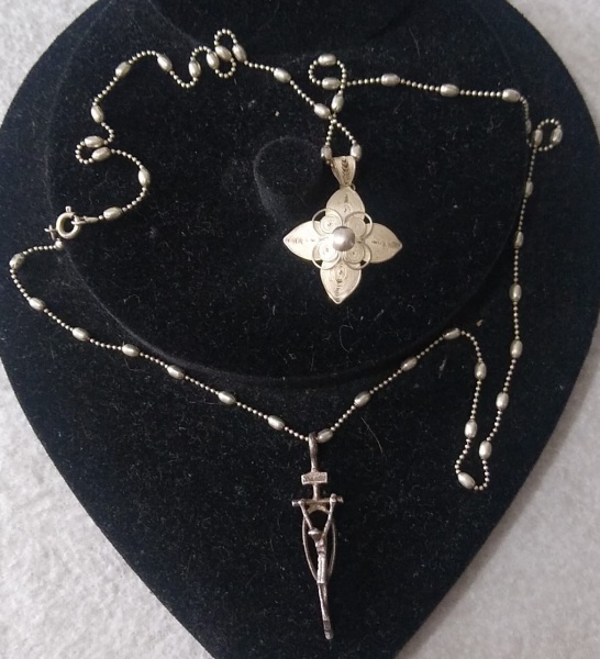 • Joias - Cordão tipo terço !! 2 pingentes !! Jesus Cristo e Rosa !! tamanho de 70cm todos em prata de Ley !!! peso de 14,5 gramas !!
